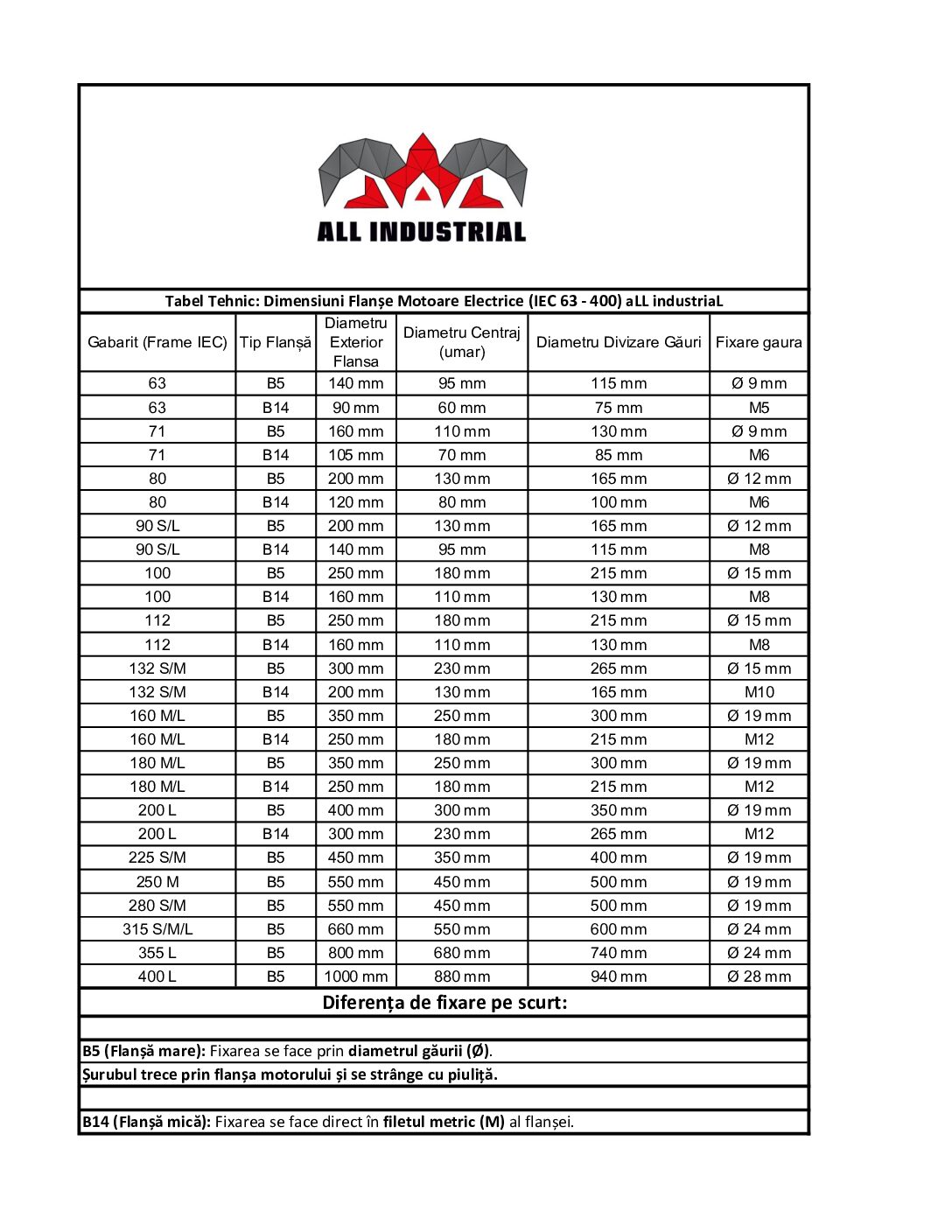 Caracteristici Flansa motor electric 112 B14 aLL: