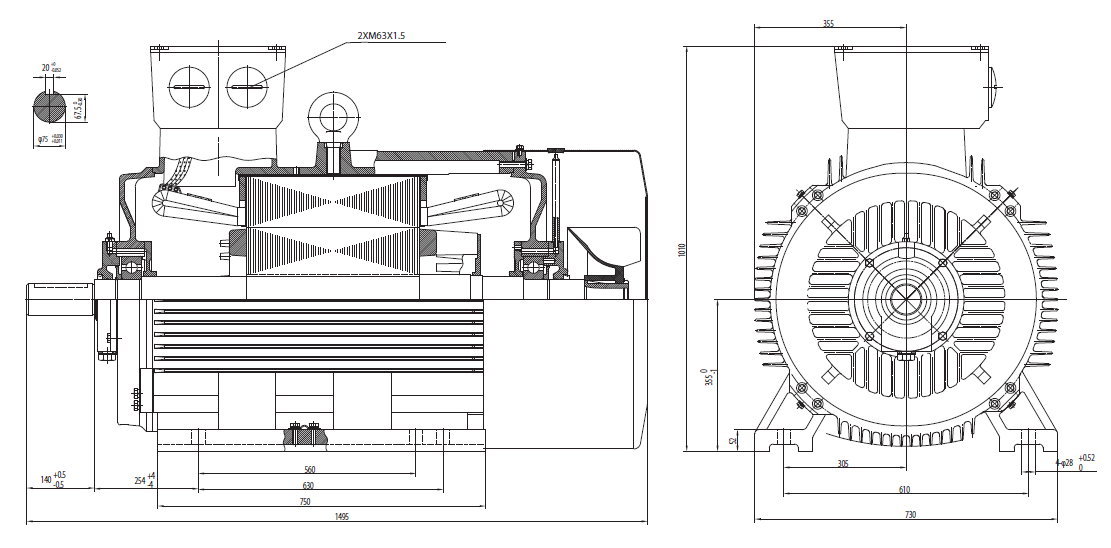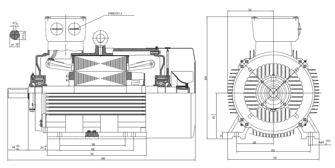 | 7T1 355L2 | 315 | 430 | 2980 | 94,0 | 0,92 | 520,7 | 6,5 | 1010 | 1,6 | 2,3 | 1838 | 8 | 1838 | |