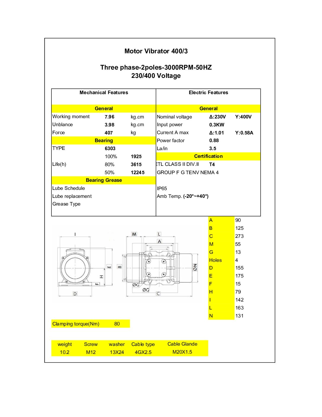 Dimensiuni Motor vibrator trifazat MVE 400/3